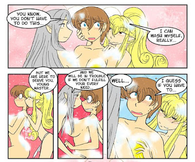 Today's guilty pleasure reading is the "onsen" scene from gender-bending magical girl comedy Sparkling Generation Valkyrie Yuuki (Gosh, what a mouthful!) by Kittyhawk. All that's left now to take place is a beach episode, and oh yeah, a school festival misadventure at Montrose Academy.